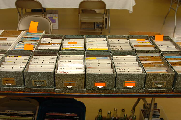 We got postcards by the boxes......have a seat and look for your favorite town.