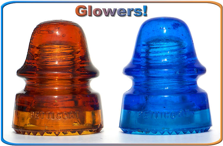 In the left of this pic is a piece I have been after for quite some time now - in fact - since 1998 when I re-entered the hobby. I had heard of a glowing orange signal the day I got my first glowing peacock blue insulator. Thanks to my old time buddy, Chris McClelland, I finally got one! Also thanks to Bill for having a trade folder! The pic makes it look more red. This beauty is orange in real life. I guess the camera "averaged" the blue and orange together in the final. It was a long 11 year hunt - but when I see the sun coming through it in the morning - the fire inside this piece makes me forget the years without it. |