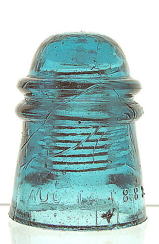 Picked up this nice little Brooke's Blue CD 120 not so much for the color as for the patent date which is my birthday, Aug. 14. I guess if I had Bill's electronic price guide I could do a quick search for all insulators with an Aug 14 embossing, but the only other one I know of is the Chambers CD 317 (and the 317.5 of course). If someone with the electronic guide could search and let me know if there are others I would greatly appreciate it. |