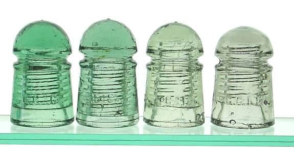 A lineup shot showing (L to R) PT variant in True Green, PT in Sage Green, odd "lemon-lime" PT variant, and an almost clear (grey tint) RT variant for comparison.