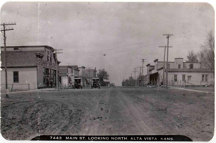 Along the left are some pretty primitive telephone line poles. On the right the taller ones were for electric distribution with the somewhat shorter line following it probably for telephone service as well. One only knows how many specially-colored glass insulators were used in situations like this whereby multiple circuits probably were either owned by different companies or for specific line wire identification. |