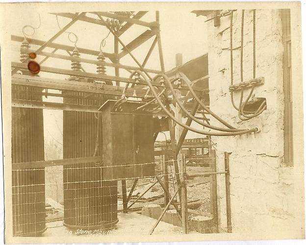 Sifting through my picture files yielded a number of scans of old Georgia Power substation photos that were printed as postcards. I've long forgotten from where I downloaded these, but now they're going into the gallery. This one is illegible - but the words "Stone Mountain" can be made out. |