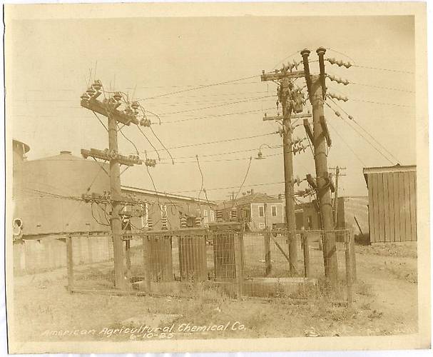 Sifting through my picture files yielded a number of scans of old Georgia Power substation photos that were printed as postcards. I've long forgotten from where I downloaded these, but now they're going into the gallery. This one is marked "American Agricultural Chemical Co. / 6-10-25" |