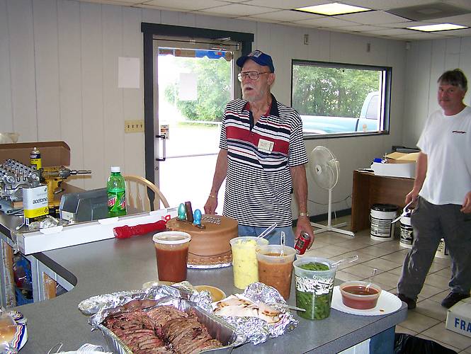 Ross provided B-B-Q lunch and a cake to celebrate Wade Howard's 74th Birthday.