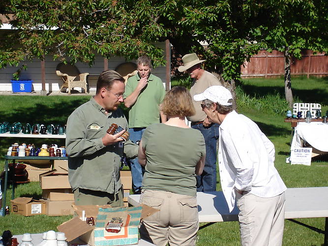 In typical fashion, old green teeth wows even the seasoned collectors with a Harloe claw beehive in porcelain. Howard banks is saying "You got that off MY table ???" as even Bob Jackson says he saw it there too. Note: the ladies still have not moved ! |
