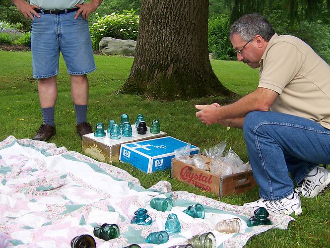 My co-pilot Ron Barth, who made the trip across Pennsylvania with me today, checks out some of the great threadless pieces of Jim Peach.