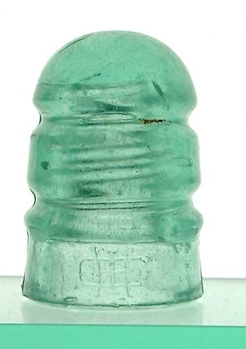 Harloe Insulator Co. took over the plant in Elmer, NJ after Sterling ceased production. They shortly removed themselves to Hawley, Pa. and because they put this marking on their insulators, many collectors incorrectly refer to these as "Hawleys", when they are, in fact, Harloes. Harloe glass is known for being junky, although many examples are not. This piece is chock full of a white fibrous debris giving it a jade-like appearance. |