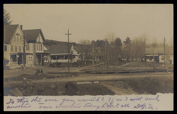 Shown above are a variety of communications and electric lighting service lines crisscrossing this village's centre.