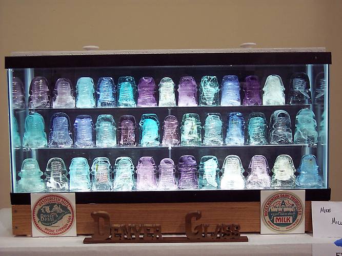 Mike Miller's Display of fish/insulators. The water tank really highlights the imperfections in his great Colorado glass.
