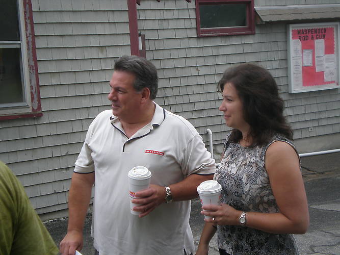 Dave and Sandra Dangora arrive with giant coffees. Dave specializes in collecting Italian insulators. Dave was able to pawn off a couple of MIVA T-bars off on me. I putting together a foreign glass and porcelain display for an up coming bottle show.
