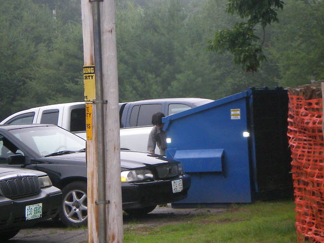 This was a new feature of this years outing. DUMPSTER DIVING !!!! Brand new absolutely clean dumpster with a fairly large assortment of unwanted insulators. Considered an honorable sport here in the east.