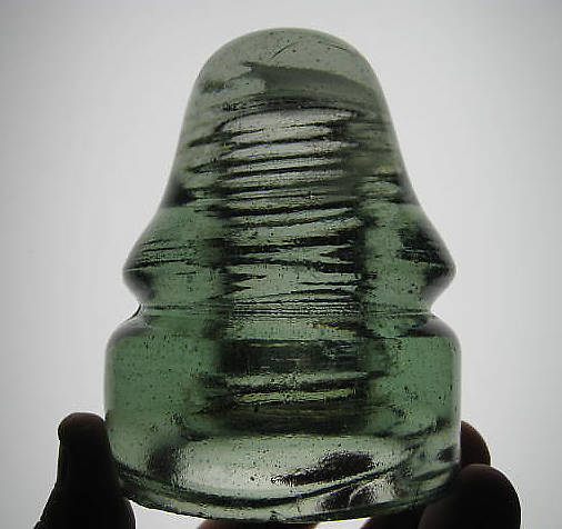 Here is cool looking CD 133 Canadian 'tall dome' style. This one is a two tone with a sagey grayish green from the upper wire ridge down and then a lighter gray above. Some gray milk swirling at the dome top as well. Unusual.