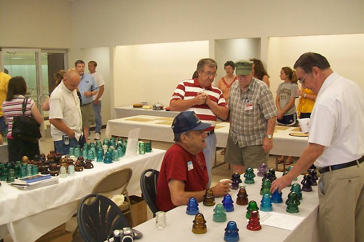 Paul Deriso can't take his hands off a CD 151 peacock H.G. Co while Graham Barns tries to make a sale. Jackie Shaver and John Lewis in the background have a side bet on whether he will take it.