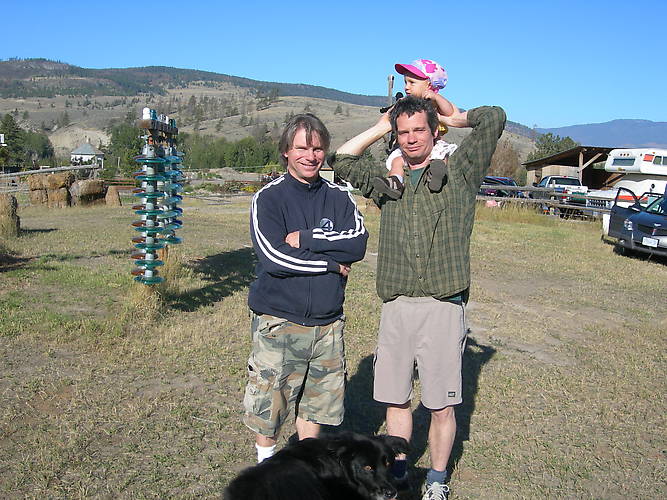 Making a rare appearance at the Merritt Insulator Show was Mark Lauckner. This was Mark's 3rd Merritt show, and he always brings something special. This time he brought his wife Leanna and young daughter Stella. Listed by order of height, is Stella Lauckner, 14 months old, at her first Insulator Show. Next tallest is the proud daddy, Mark Lauckner, and beside him is Dave Rosychuk of Vancouver, B.C. Stella stole the show with her sunny disposition and winning smile, and I hope she'll soon be back to Merritt with her parents. It was great to see Mark again, and to meet his family. |