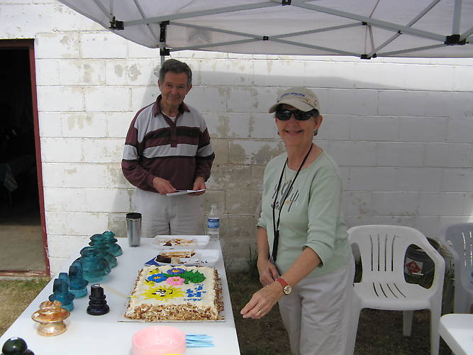 Win Trueblood was turning 80 within a couple days of our show. Bonnie called me and wanted to get a cake for a birthday celebration at the show. It went like clockwork and we sang happy birthday and had some great cake. Win and Bonnie are 2 of the nicest people in the hobby you will ever find. Insulator collecting must keep you young because here is another 80 year old collector traveling a fair distance to have a great time with fellow collectors. |