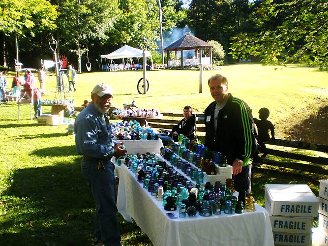 Two great guys! Peter Persoff on one side of the table and John Rajpolt on the other. John is the "main man "in our club. That`s Joe Mayhew in the background. No the gazebo is not on fire. Larry Emmons is back there stoking up the fire. The boys get a little nasty if they aren`t fed at noon! |