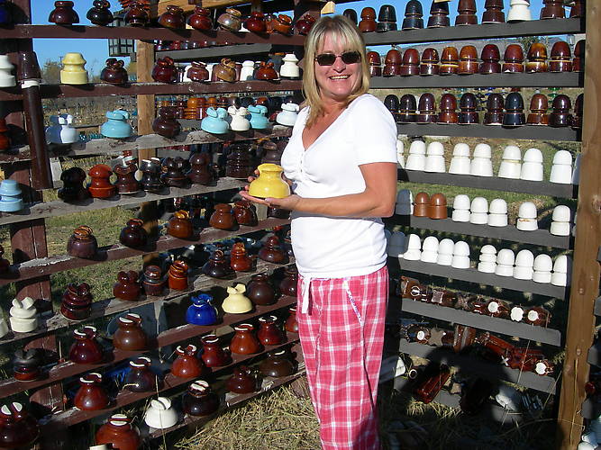Not to be outdone by Kim, Renee grabbed a bright yellow insulator and went into her sales routine. It is hard to believe how many years have passed since Kim and Renee asked me to teach them how to climb poles so they could collect on their own. Seems like only yesterday somehow. Actually, we did talk about one more climbing trip. Perhaps in the spring when the weather warms up a bit. We will have to get lots of pictures of that trip. |