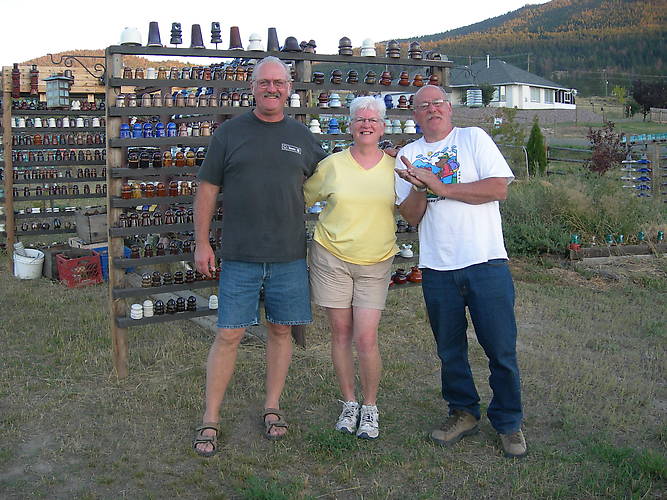 The behind the scenes star of the show, my wife Bev. She takes care of all the little things, like the chili lunch on Saturday, the coffee, bacon and eggs breakfast on Sunday, and me, the rest of the time. Here Bev is with our good friends Dave Fleishman [R] and Aidan Morgan [L] I also want to again thank all the other "Gals" who helped Bev with setting out and later, cleaning up after the meals. |
