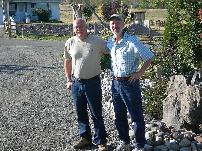 L-R are Dave Fleishman and Jim Foulkes. Last year, Shelley Harynuk took some great shots of the wives and girlfriends at the show and had some calendars made. Bev's picture was on the September page when I celebrate my birthday. This year, Shelley agreed to do it again, but Dave and Jim were both "singles" at the show, so Shelley took this picture of them. They can explain it to their respective girlfriend and wife. Good luck guys. |