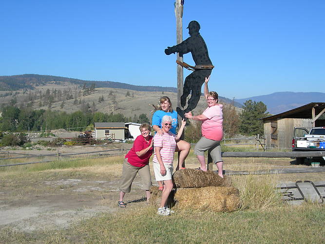 and now, it is time for some fun. "Larry the Lineman" never had it so good. The gals just couldn't keep their hands off Larry it seems. [L-R] Shelley Harnuk, Brenda [Larry's creator, thanks Brenda] Morgan, Bev Scafe [below], Larry, and Marcia Ryder. Marcia claims she was only waving, but it sure doesn't look like it. Nice try Marcia. |