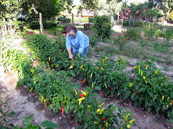 Judy's taking a few of Tom & Lynda's homegrown peppers back to Colorado