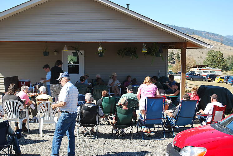 When Bev sounds the dinner call, you better get moving now, or you'll be waiting in line with all the guys going for seconds. The chili is good, both types, the mellow and the "Killer Chili", and everyone just digs in. We are going to have to start making bigger batches. The stuff just seems to evaporate. Here you can see all the hungry Insulator Collectors hard at work. How is your chili? When you're finished, we'll go check out the Insulator Field. |