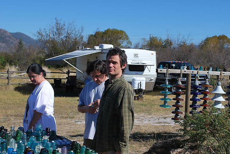 It seems all roads lead to Merritt. Here is Mark Lauckner [Green shirt] of Mayne Island, B.C., with Nikki and Dan Culver of Bainbridge Island in Wa. Sadly, Mark has been an infrequent visitor here in Merritt. He was at our first ever Merritt Insulator show in May 2005. He made it to one other, and this time, he brought his wife Leanna, and their gorgeous 14 month old daughter Stella. Cute as a button, she stole the show. This was Nikki and Dan's 3rd show in Merritt as well. |