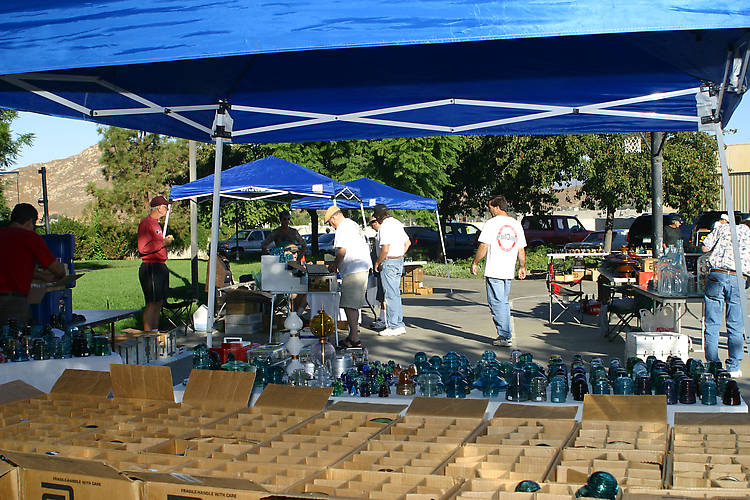 The Double D Tailgater was successfully held Saturday, Oct. 3 at Wilden Park in Grand Terrace, CA. We had 85 attendees present enjoying a beautiful 80 degree day in Southern California. Collectors joined us as far away as Northern & Central California, Arizona, Nevada, Utah, Colorado & Texas. All of the following photos were taken by Kevin Jacobson. As seen in the foreground of this pic, I just placed open boxes on a table and allowed collectors to forage through them. This made for a much quicker setup and breakdown since I had other occasional show host duties to tend to (that's me with my back to the camera at the far left). |