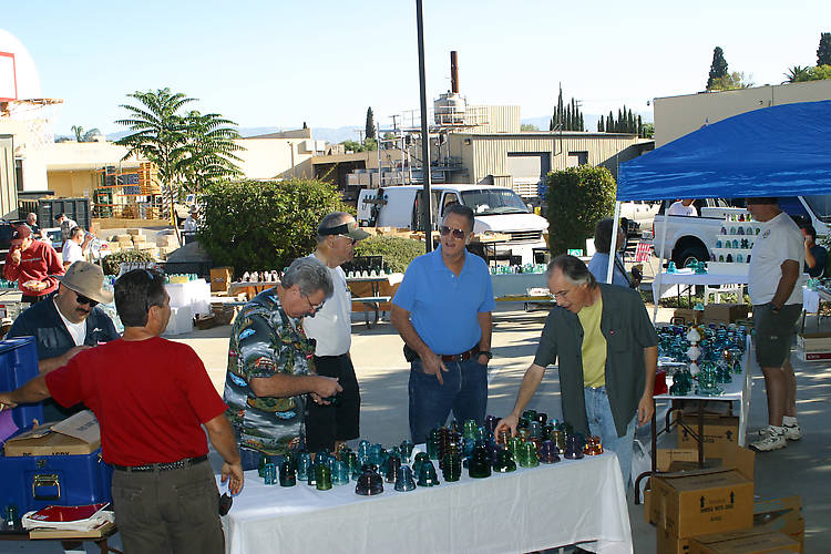 (My back is to the camera in the red shirt) To my left is Steve Benson checking out some of my purchases from the Iowa National that were just delivered to me by Kevin Jacobson. Kevin drove and I flew to the national, so he graciously offered to haul them back for me. This was the first opportunity for us to meet up, so it was renewed excitement for me as I unpacked the box and found a couple forgotten gems within. To my right is Robert Baumann, Sr., Bill Harrison, Butch Haltman & Scott Clark. To the far right is my show co-host, Dave Leforge, with his head nearly lost in the canopy. |