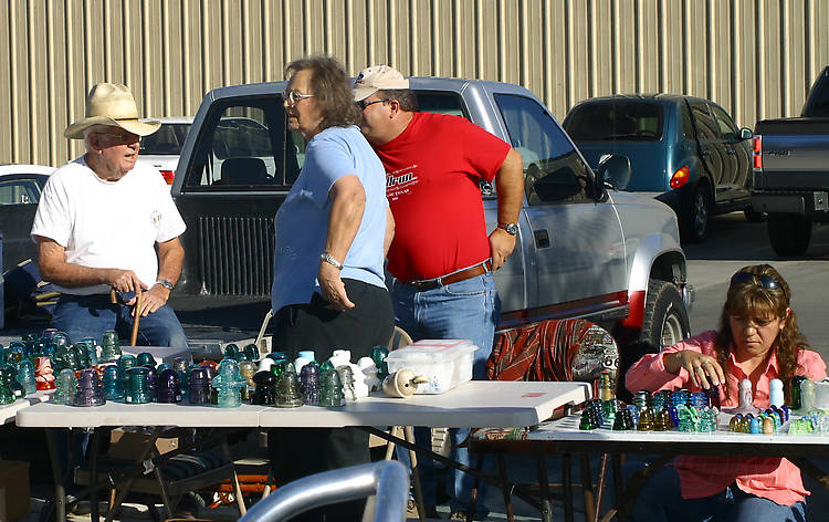 The Bayes family enjoying the sunshine and mild autumn day. L to R: Don, Elaine, Bill & Maria. Don has been fighting some health problems, but they aren't enough to keep him away from the insulator events. It was great seeing him and the rest of the family at the tailgater. You won't find nicer people! |