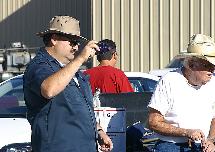 Steve Benson is carefully scrutinizing a purple signal for his growing collection. Don Bayes is seen to the right and yep, that's me again with my back to the camera.