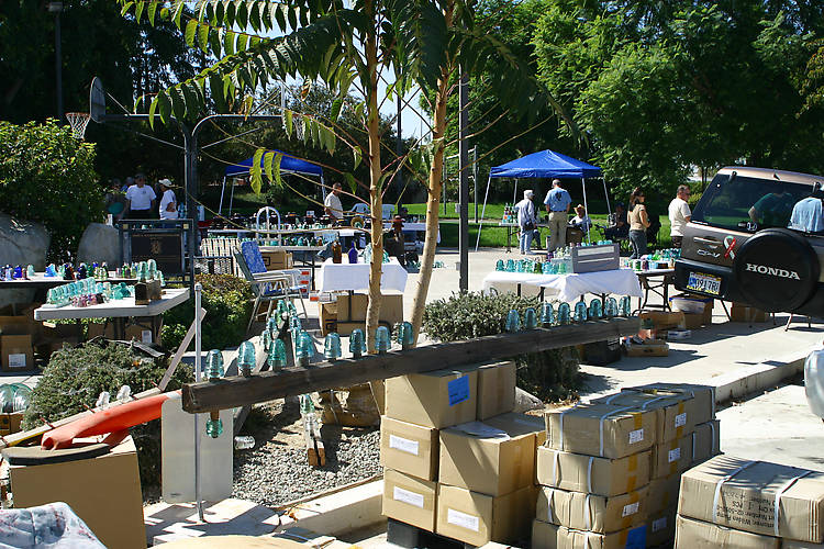 Another partial view of the tailgater, with a crossarm for sale in the foreground, complete with insulators. Note the duplex setup on the crossarm's extreme left, including the Brown's pony.