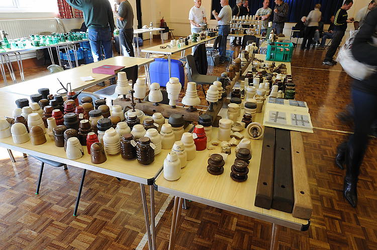 Gene brought many rare insulators to the show including some that are seldom seen. In the distance is Ardie Clark who is looking at Derek's photo album. Tris Horton and Yannick are standing towards us behind Derek's table.