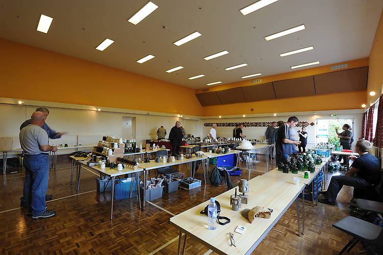 Derek Milward and Jim Bergman are in conversation while Mary Clark appears to be eyeing up a pair of Red Bullers.