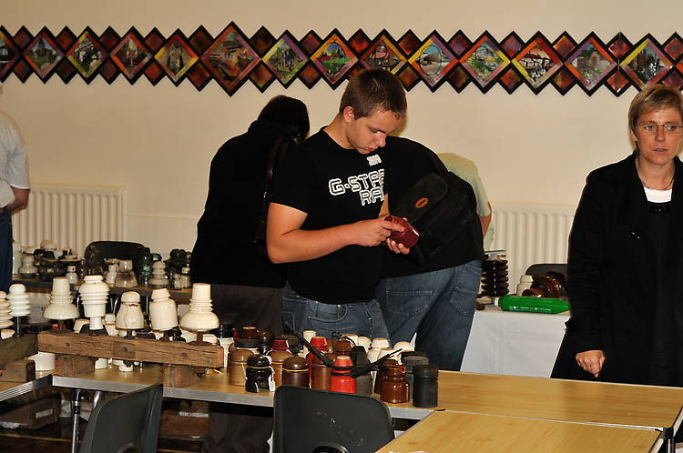 Louis from France taking a good look at a plum glazed Wade Cordeaux from Gene Kingsleys table. These are nice, with a true glaze, compared to the ceramic paint on the Buller reds.