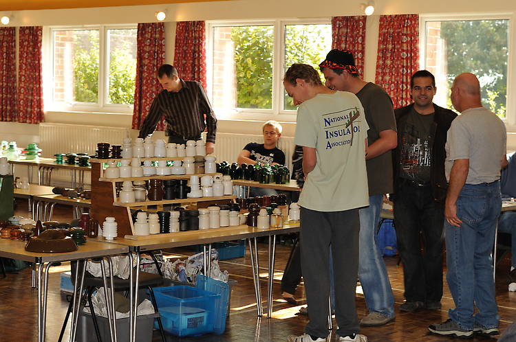 A bunch of people having a look and chat around Dereks tables. I think James and Zoltan are looking at the Spanish insulators, while Derek and Miklos probably tells hunting stories to each other, trying to impress and brag about the super rare stuff they've found... |