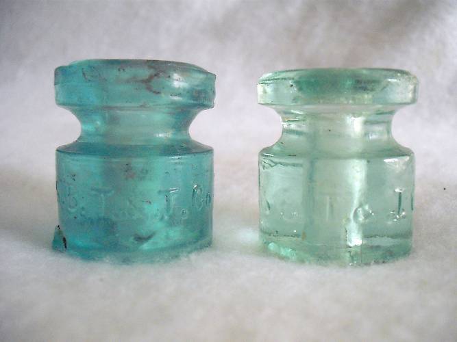 I picked up the little glass spool on the left at the recent Mid-Ohio show held at Springfield. This one pairs well with the one on the right which I've owned for a little while. These are fun little spools to collect. The embossing refers to the Southern Bell Telephone and Telegraph Company. My previous photo, of just the lighter aqua piece on the right is shown here: [id=244212280] Enjoy! |