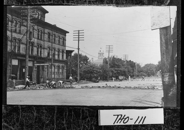 Construction workers paving streets in downtown area. From Georgia archives.