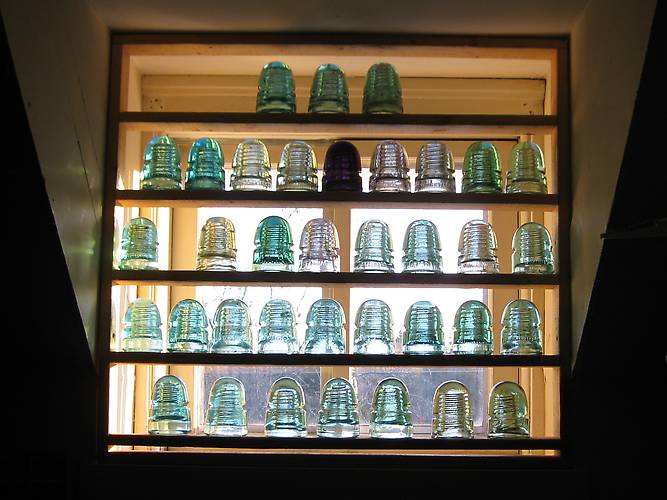 This is my accumulation items that I have been fortunate enough to obtain over the past 3 years. I have recently added greatly to my prized and coveted collection mostly because of the wonderful and prized ICON community. I have 47 new insulators of this style on their way from Canada. I am so excited! I only have one dormer window left. My wife says that I cannot cut more out with my chainsaw, perhaps a sawsall then??? Thank you for looking! |