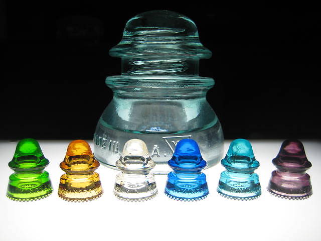 Shown here are the McDougald Private Issue Minature set of CD 162 style insulators. There is only one missing, the " Silver Carnival" High on my priority list of desires. Has anybody seen one of them?
