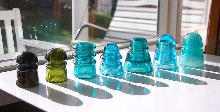 A bit late, but I just wanted to show what I came home with from Springfield. I'm not a big-budget collector (yet!), so there's nothing here to brag about. Except that they're mine and I'm happy to have them. 1. Diamond pony in amber blackglass. To add a new color to my small diamond pony collection. 2. Brookie 101 in darkish yellow green. I didn't have a 101 in my collection. Bought from Jim White. 3. No Name "&" CD 117 in medium/dark aqua. Also a new CD for me. 4. Baby Hemi signal in Hemi blue. A new CD in my Hemi blue collection. 5. Brookfield haystack in dark aqua. A new CD for me. 6. Nice conehead beehive. I have several of these but didn't have one in this nice of a blue. 7. Jade H.G.CO. beehive. Hey, I just wanted one, OK? |