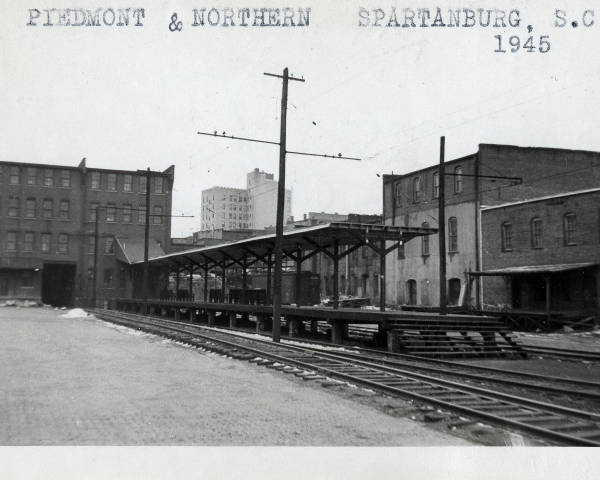 This is a old piedmont & Northern Electric Railway Station in downtown Spartanburg, SC in 1945. Note the large porcelain insulators on the feeder arms and the smaller porcelain insulators on the top crossarm. From the USC Digital Archives.