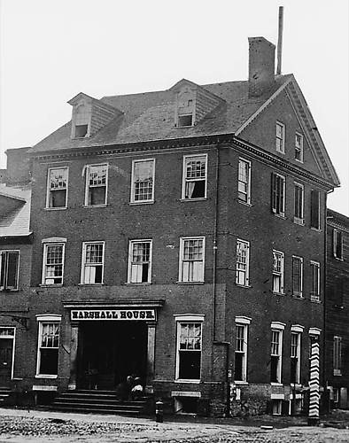 in Alexandria VA, where Colonel Ellsworth was murdered. on May 24, 1861, after removving a confederate flag from the rood of the hotel. He died in George Webb Dodge's arms. Private Francis E. Brownell, in turn, shot and killed James Jackson.