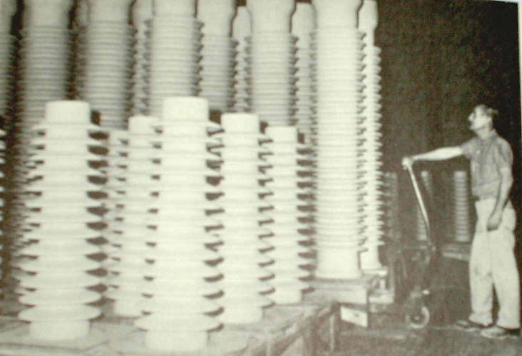 "Taken from Birth of an insulator an OB Booklet " Here an employee is readying ome large product for inspection