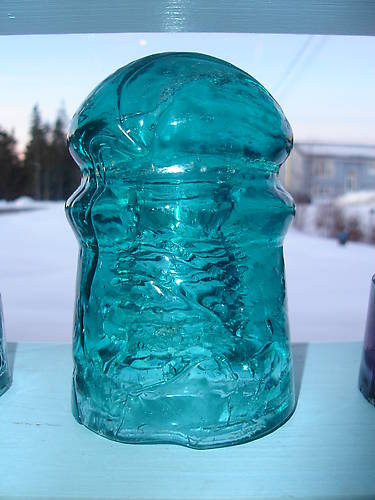 My crudest insulator by far. I finally tracked one of these down this fall, a great crude CD 126 NE Can in aqua with milk, carbon, and some nice folds in the glass. There doesn't seem to be a whole lot of these in the hobby that I am aware of. A great old heavy insulator. See how this was found, plus a selection of other top notch glass all within a one month period at http://forums.insulators.info/viewtopic.php?f=10&t=37 |