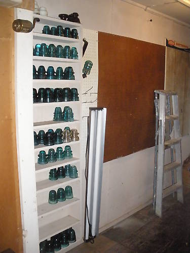 This is the east wall. There's 1 seven foot tall shelf on the wall with pegboard down the rest of the wall. Shortly, the pegboard will be moved to my workshop area of the garage and more floor to ceiling shelves will be built. The shelf currently shown holds beehives and signals 2 deep and they fit perfectly. This room is only for my sales stock. My good collection will be displayed in our Florida room. |