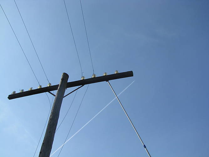 Many of the poles here on the Clinchfield have a mix of CD 154 and plastic Porters but this one has just CD 154 on it. all 5 without wires came down.