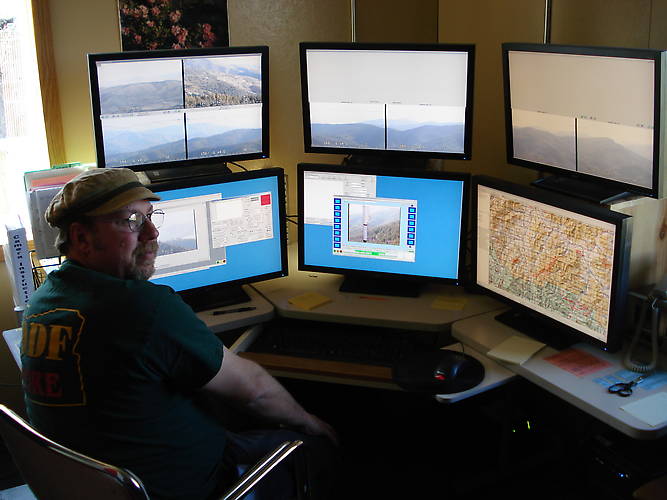 During the JSIC Feb swap, we took a quick break from the monotony of insulator swapping to follow Bill Ostrander into the computerized nerve center of an ODF mountaintop webcam. Here we see several views from Tallowbox Mountain, a fire lookout and transmission hub in southern Oregon. Bill is quite technologically gifted. I wonder if this apparatus can spot old telegraph lines? |