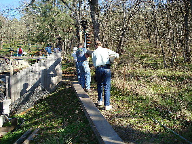 I did say it was uphill! Carl Scott takes the lead. Mid Norris in the center. I'm the last in line. You might notice a few other bits of insulator yard art on either side of the path.