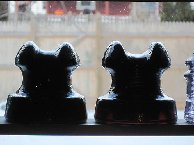 The color didn't show to well but here are two dark red amber 272s. the one on the left is a 511A and the one on the right is the elusive No 62. the No 62 has weak embossing after the word Whitall but if you hold it just right you can see the Tatum No 62. |